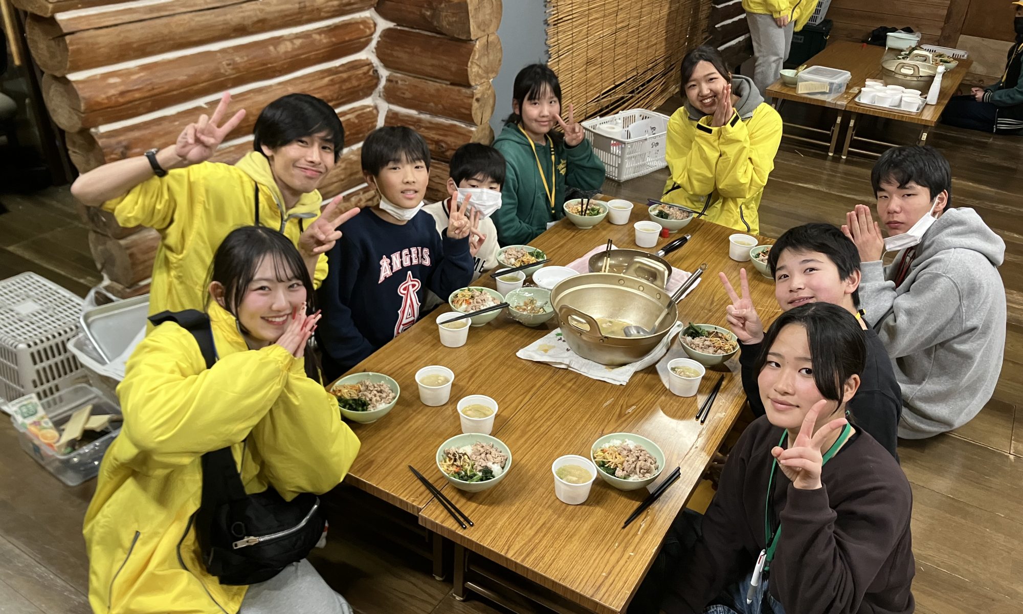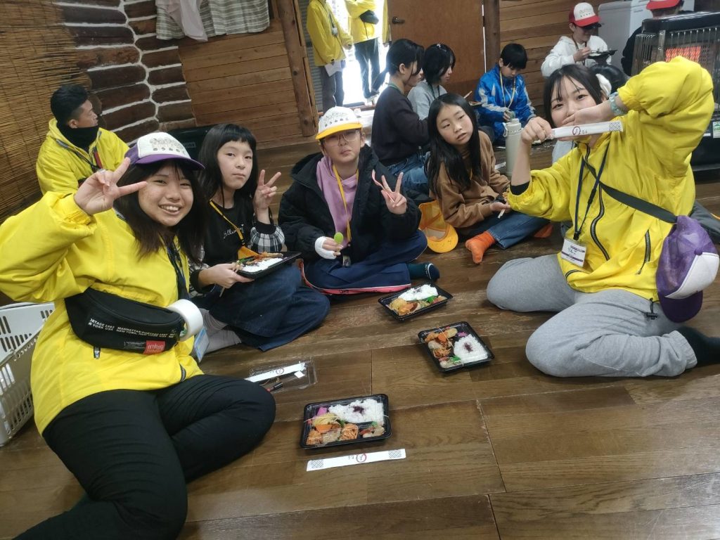 午前中の活動を終えて、みんな大ログに集まりました〜✨️今からお昼ご飯の時間です!