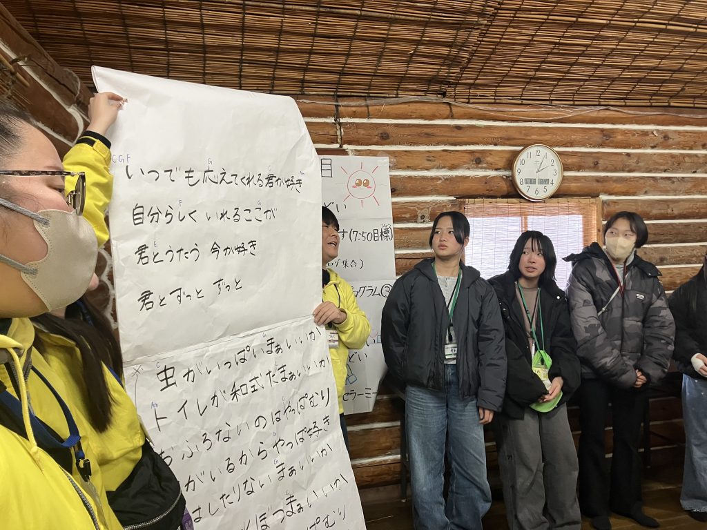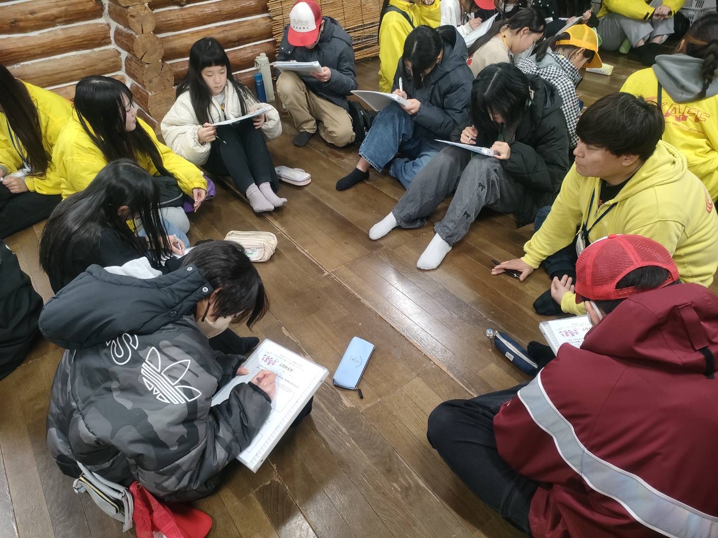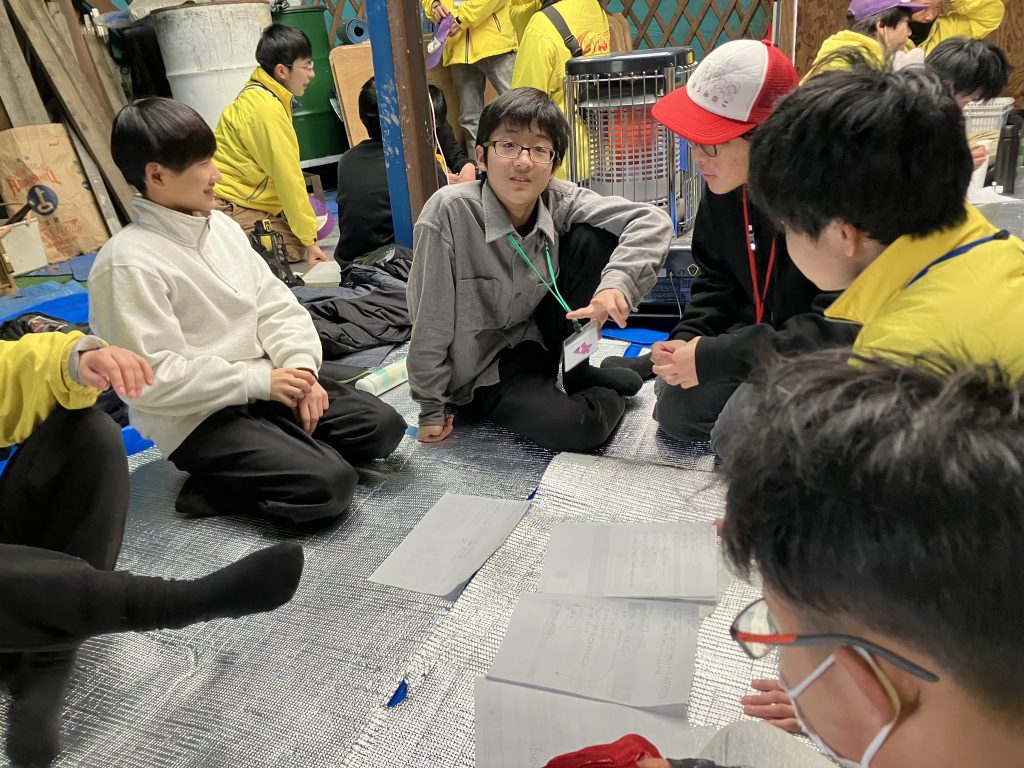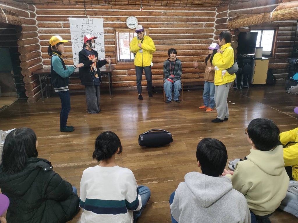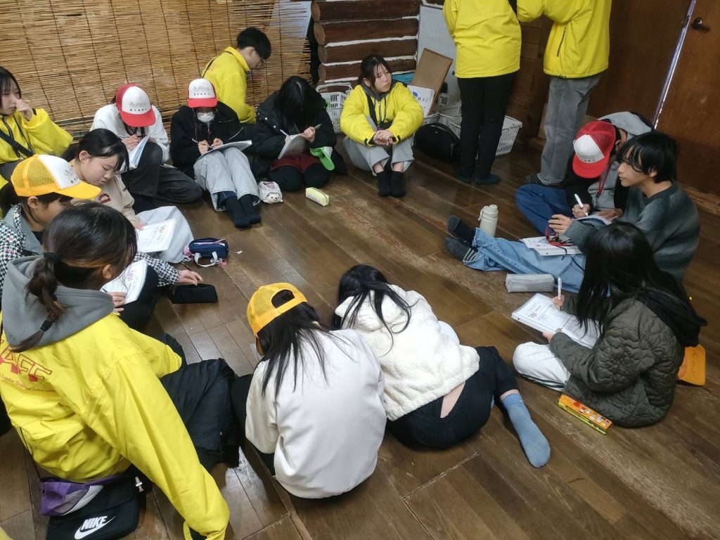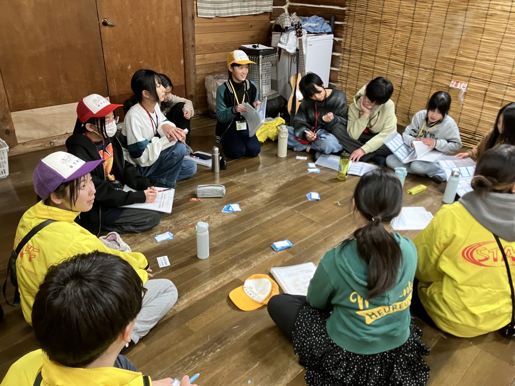 今日1日、一緒に活動をしたなかまと振り返りをしました。「今日活動してみてどう感じたか」「明日への意気込み」を伝え合いました。