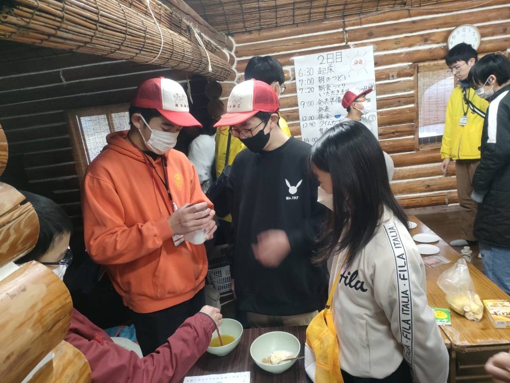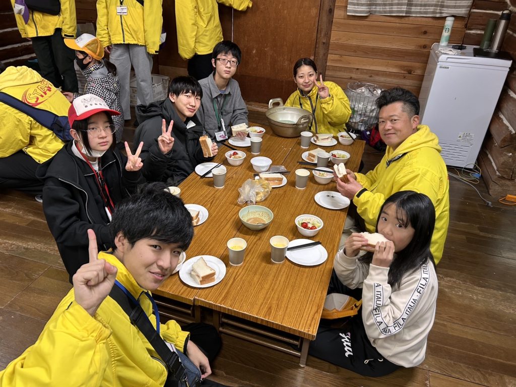 朝ごはんたくさん めいしん絶賛!今日の朝ごはんはたくさんのメニューです!そして、サラダには班のみんなで決めたオリジナルドレッシングをかけて食べました🥗
