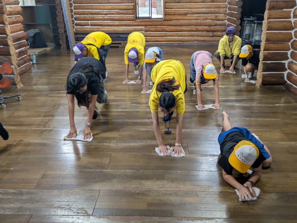みんなで周辺の草木やログを綺麗に掃除しました〜!
