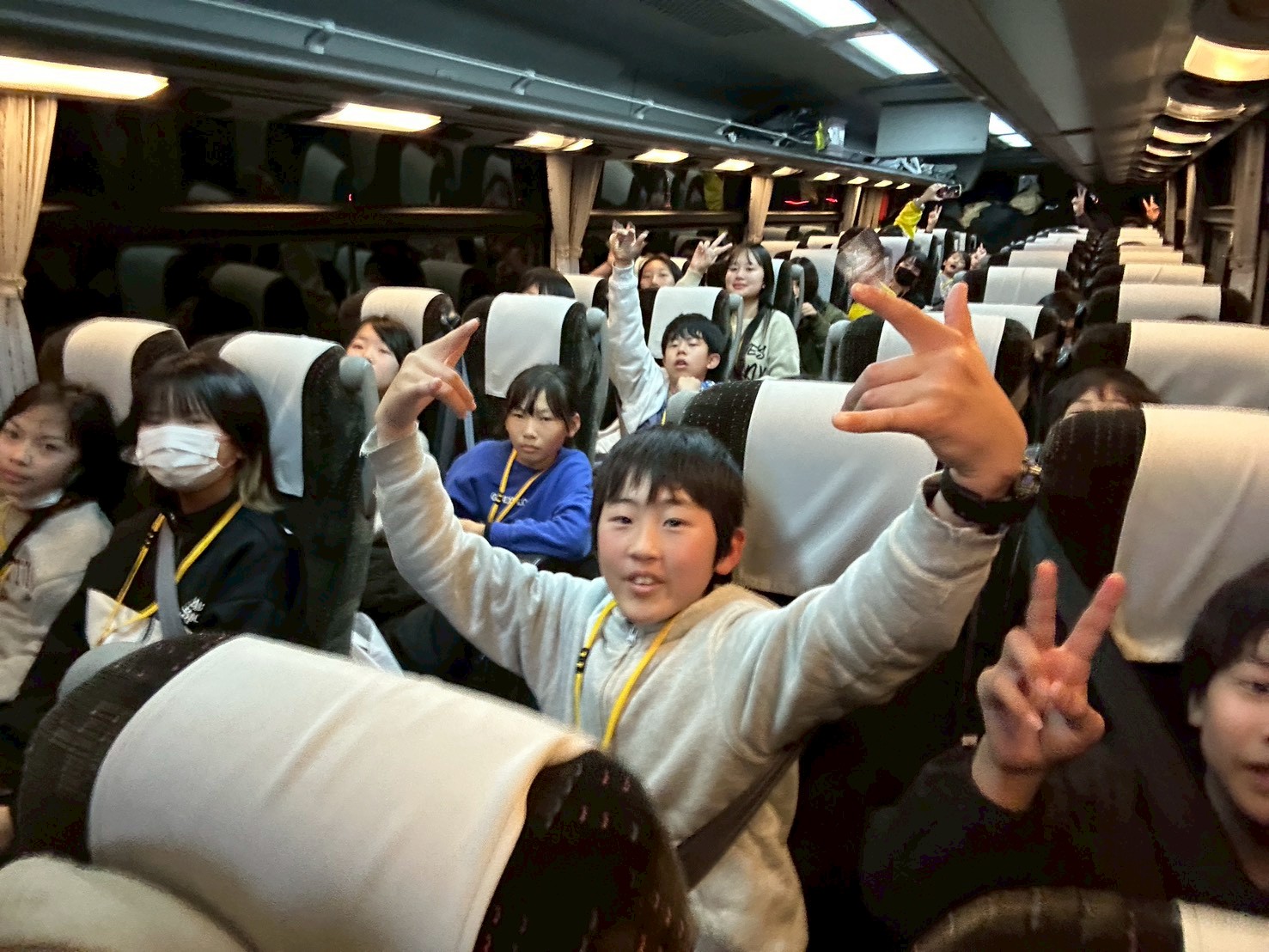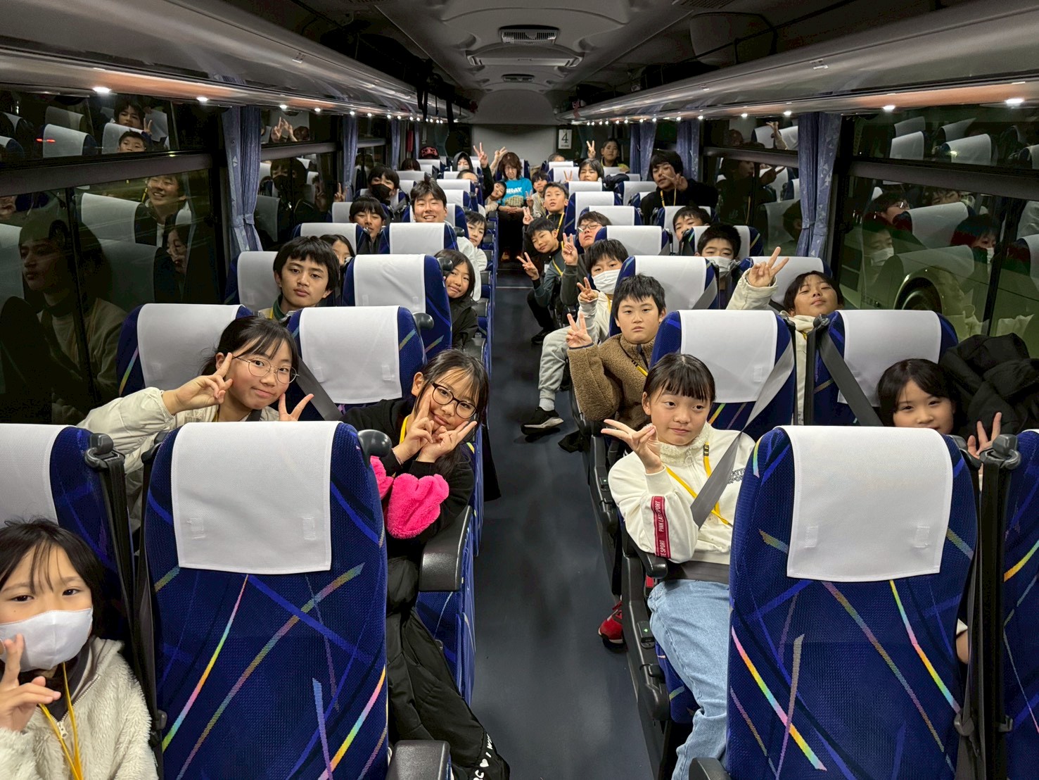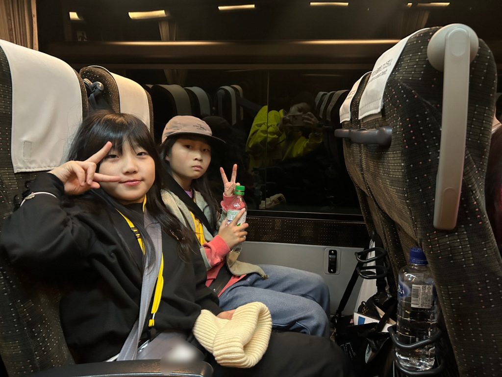 バス車内では、疲れて眠るお友だちも多いですが、目がぱっちりのお友だちはDVDを観て過ごしています😊