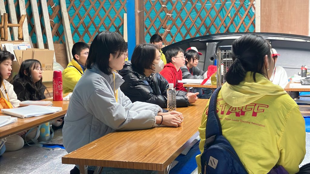 今日1日、一緒に活動をしたなかまと振り返りをしました。「今日活動してみてどう感じたか」「明日への意気込み」を伝え合いました。