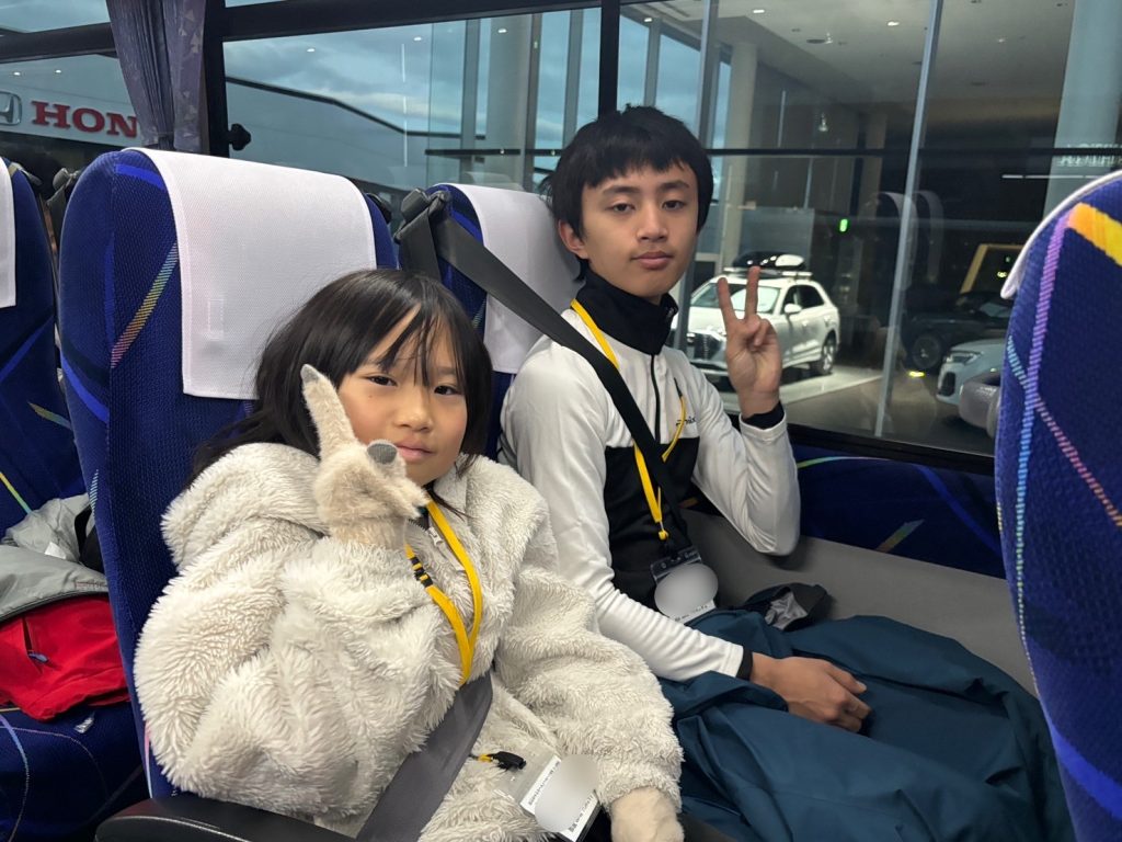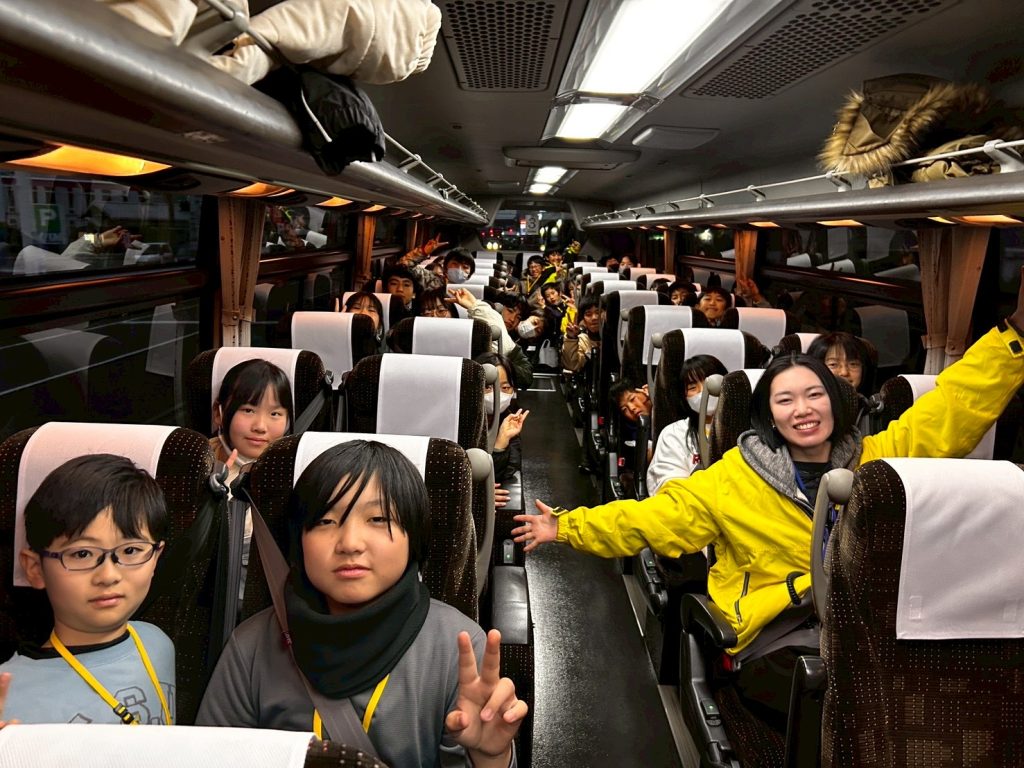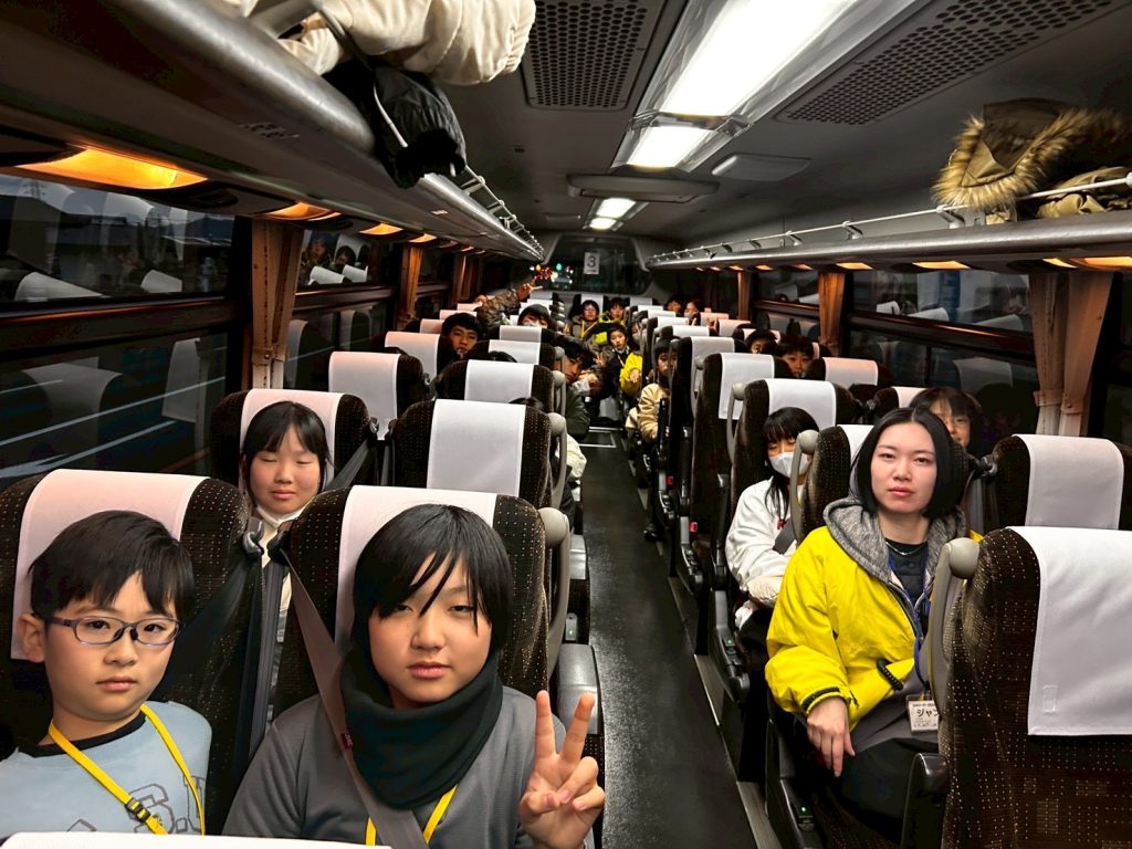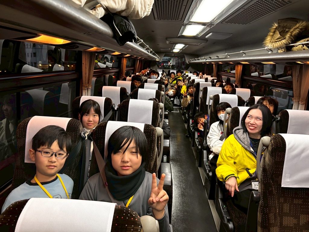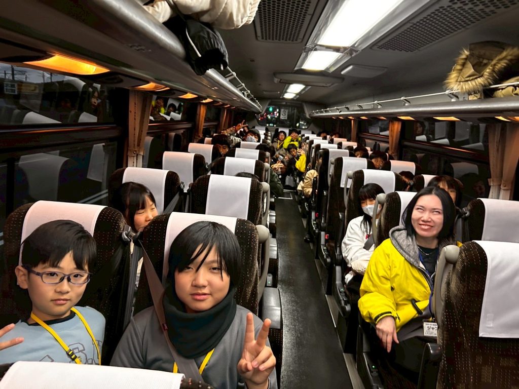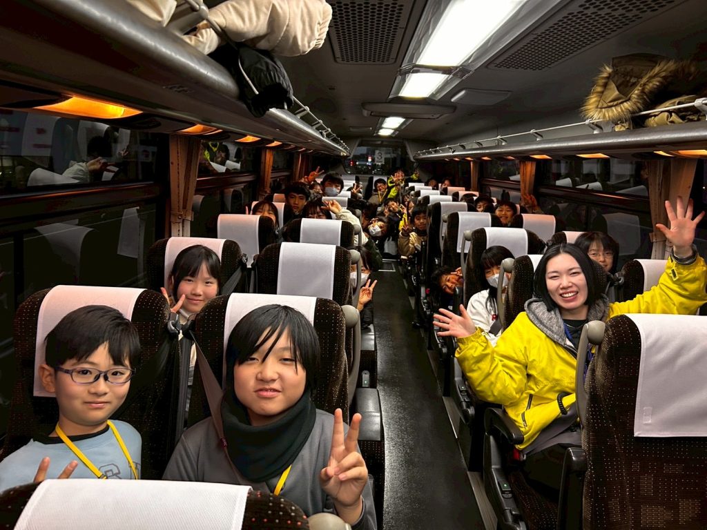 研修生・指導員・スタッフを乗せたバスは、いよいよ長野県・茅野市にある『亀屋ホテル』に向けて出発しました!🚌